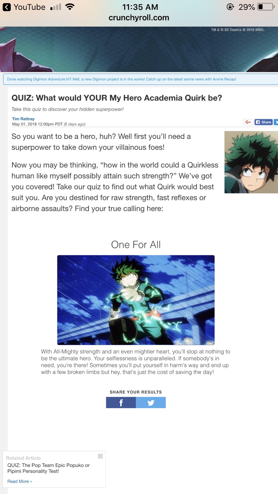 Crunchyroll On Twitter Quiz What Would Your My Hero Academia Quirk Be More Https T Co Zedyakg1f5 Https T Co Kpmsst3uxa Twitter